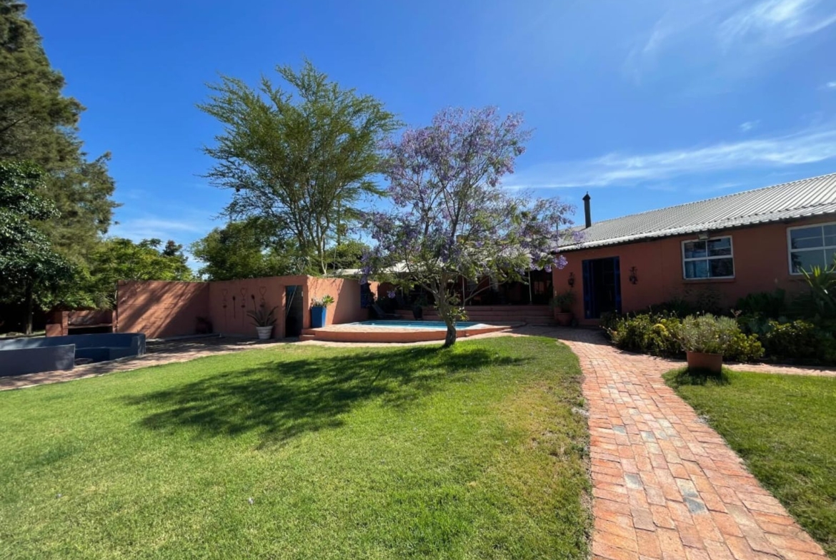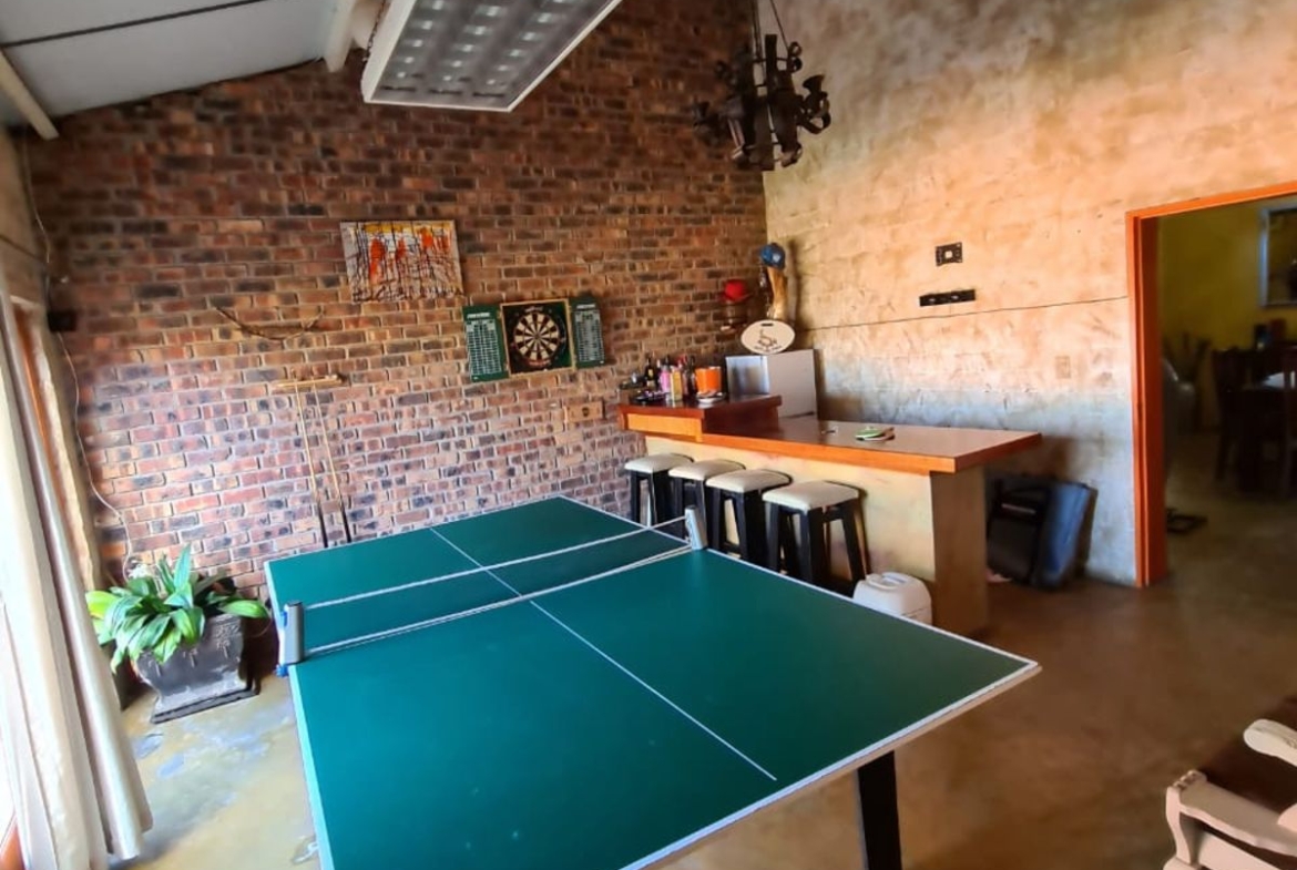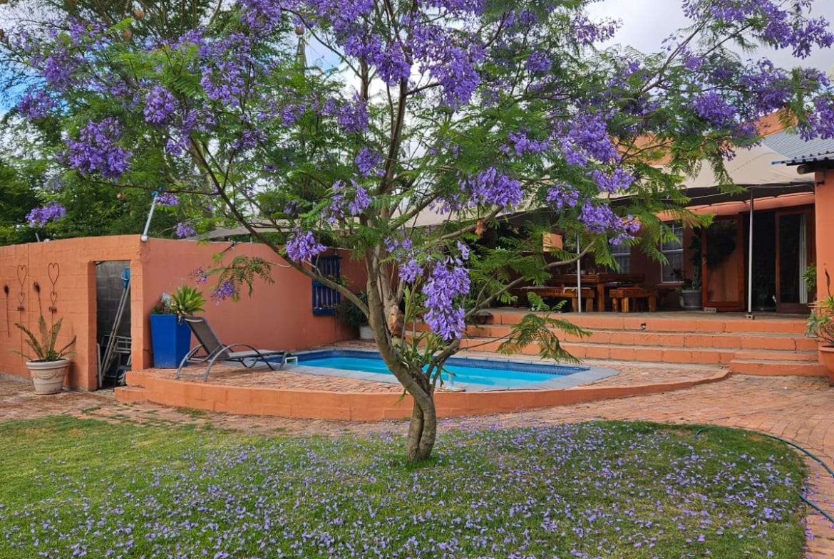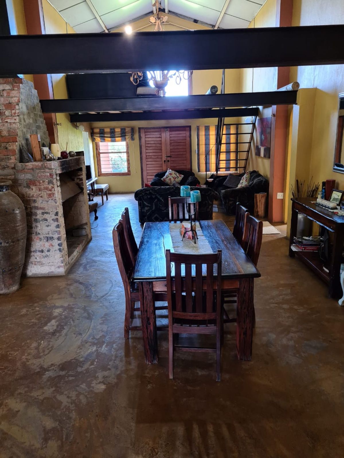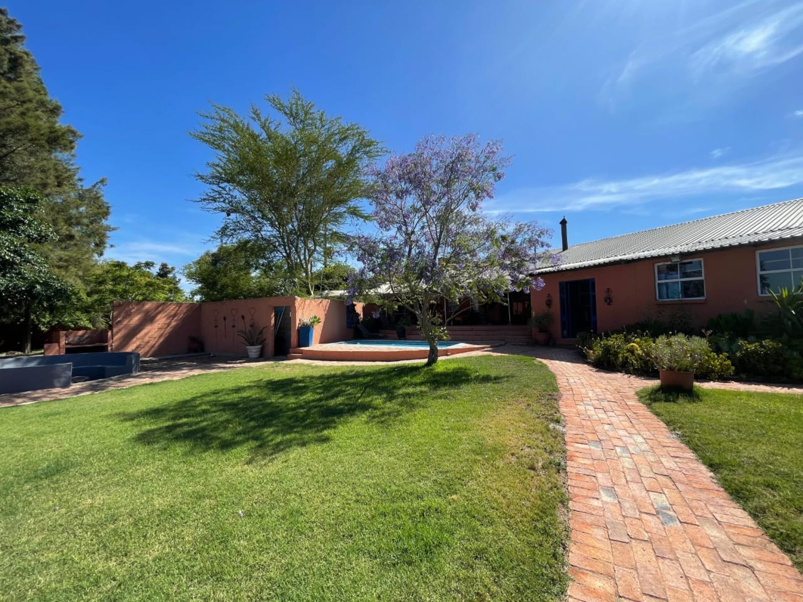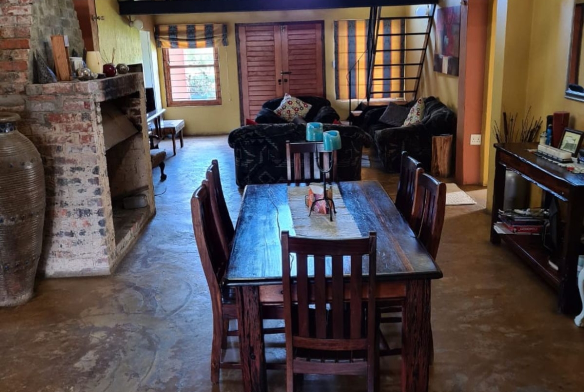 The main house exudes charm with its spacious living area, indoor fireplace, and open-plan farm-style kitchen with a central fire stove. Additional features include separate laundry and scullery areas, four bedrooms, three bathrooms, and a luxurious master bedroom with an en-suite bathroom and walk-in closet. Security gates and burglar bars throughout as well as alarm installed. Two lofts above the living space offer a peaceful office/study retreat and a seating area for enjoying the serene farm lifestyle and beautiful sunsets. The bar / entertainment room leads out to the spacious backyard with swimming pool, patio, and outdoor braai area, providing the perfect setting for cozy gatherings with your family and loved ones. Embrace the tranquility of the landscape background oasis, your own private retreat after a long day.