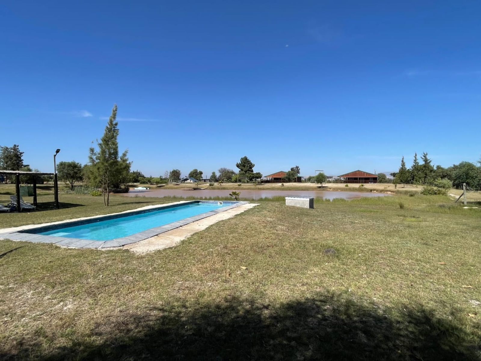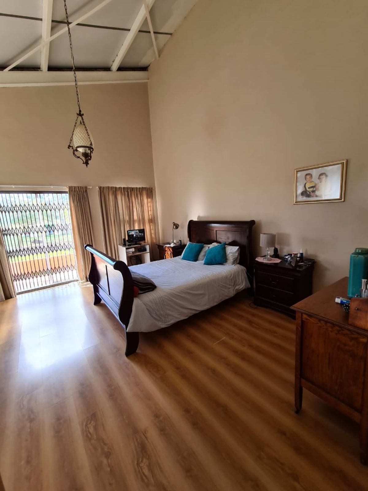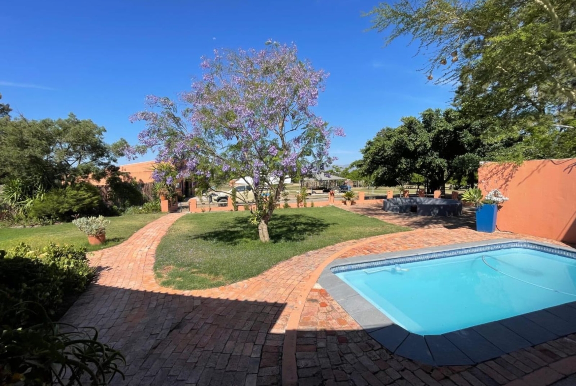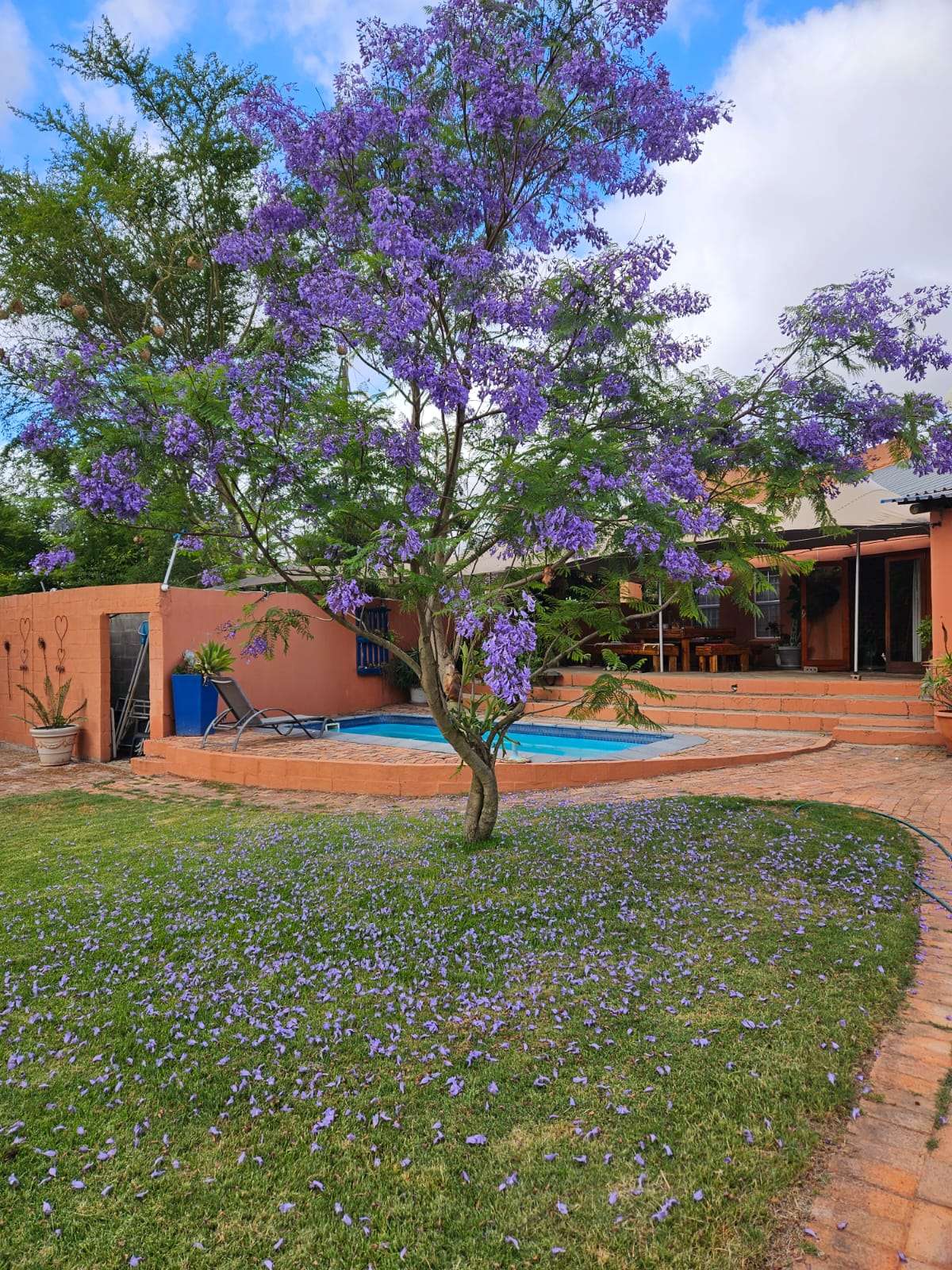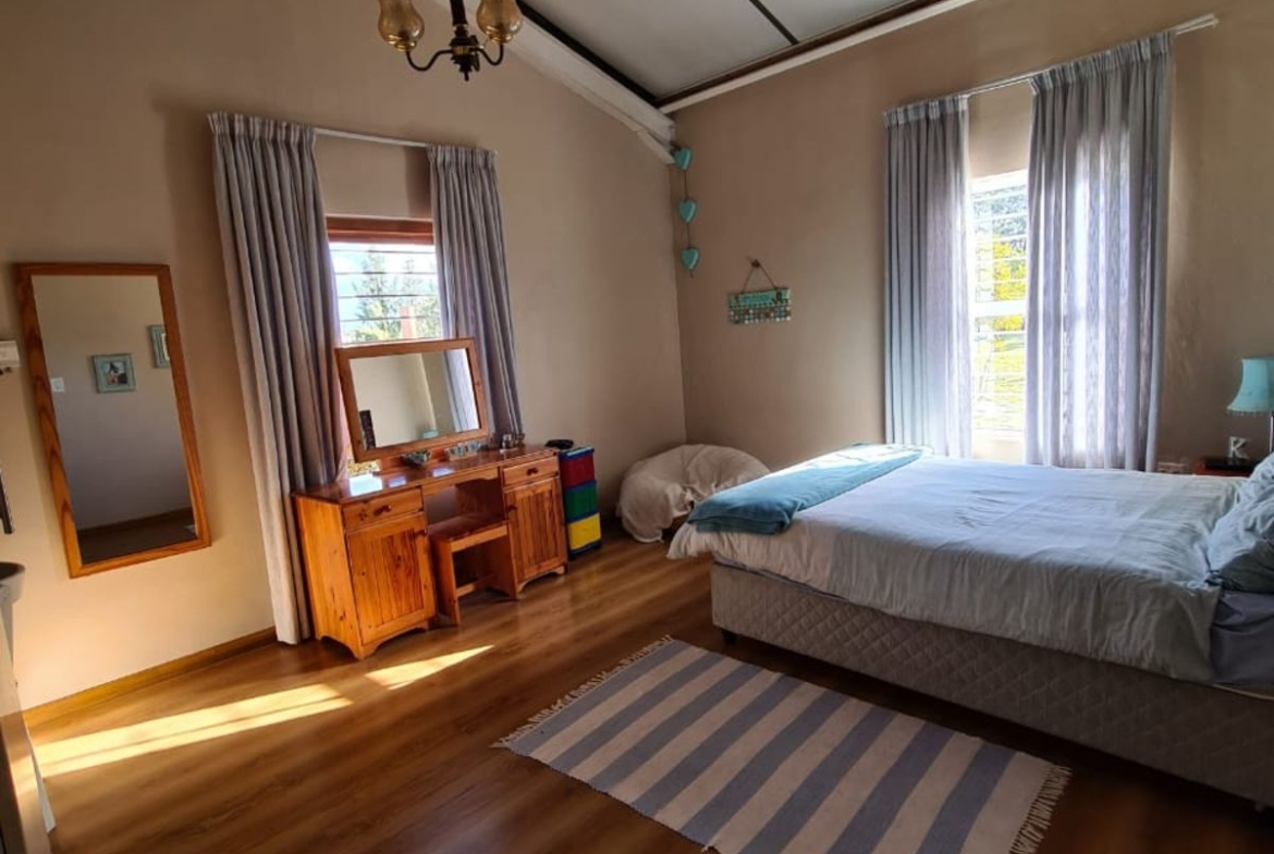 The main house exudes charm with its spacious living area, indoor fireplace, and open-plan farm-style kitchen with a central fire stove. Additional features include separate laundry and scullery areas, four bedrooms, three bathrooms, and a luxurious master bedroom with an en-suite bathroom and walk-in closet. Security gates and burglar bars throughout as well as alarm installed. Two lofts above the living space offer a peaceful office/study retreat and a seating area for enjoying the serene farm lifestyle and beautiful sunsets. The bar / entertainment room leads out to the spacious backyard with swimming pool, patio, and outdoor braai area, providing the perfect setting for cozy gatherings with your family and loved ones. Embrace the tranquility of the landscape background oasis, your own private retreat after a long day.