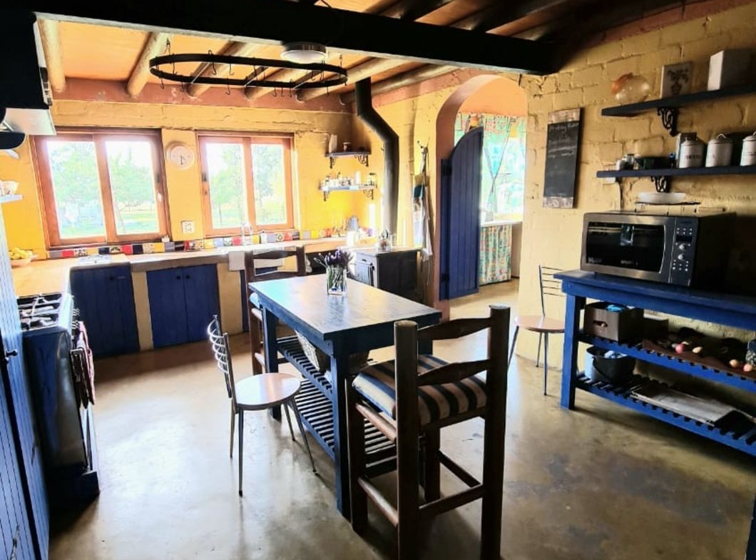 Upon entering this off-the-grid tranquil haven, you’ll be greeted by the sight of springboks and other animals freely roaming the grounds. The property features a country style four-bedroom main house, three cabin houses, a glamping tent, and a Cape Dutch style house, all boasting panoramic views overlooking a large, picturesque dam.Â