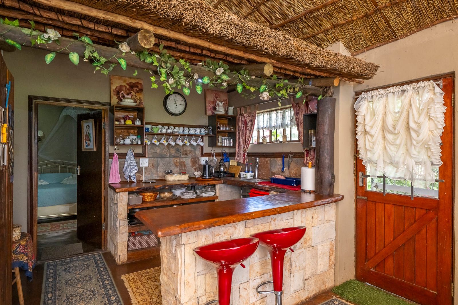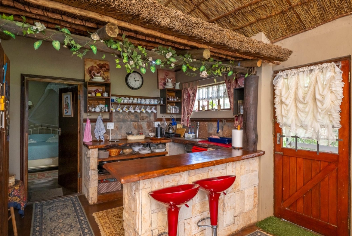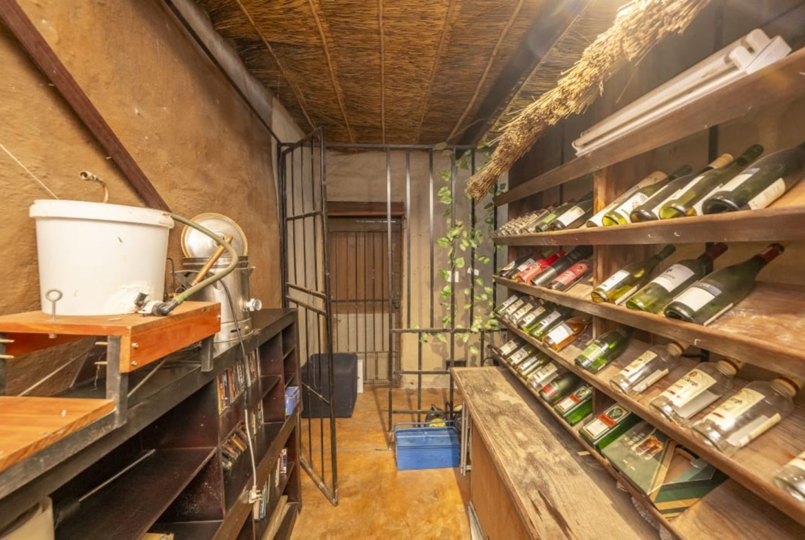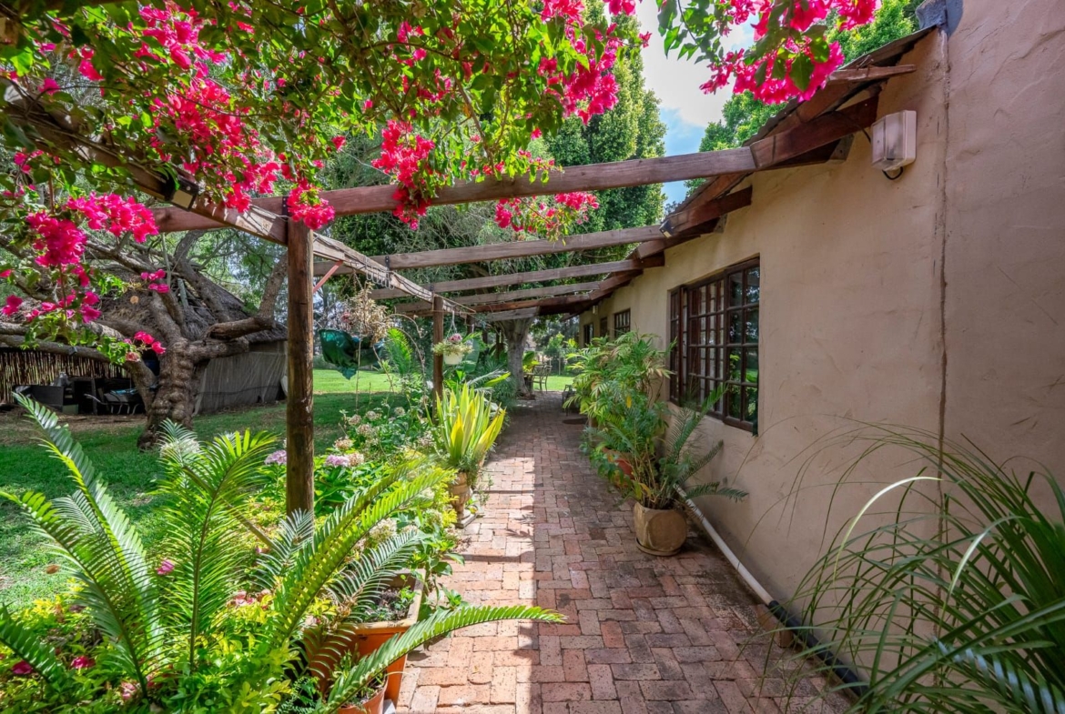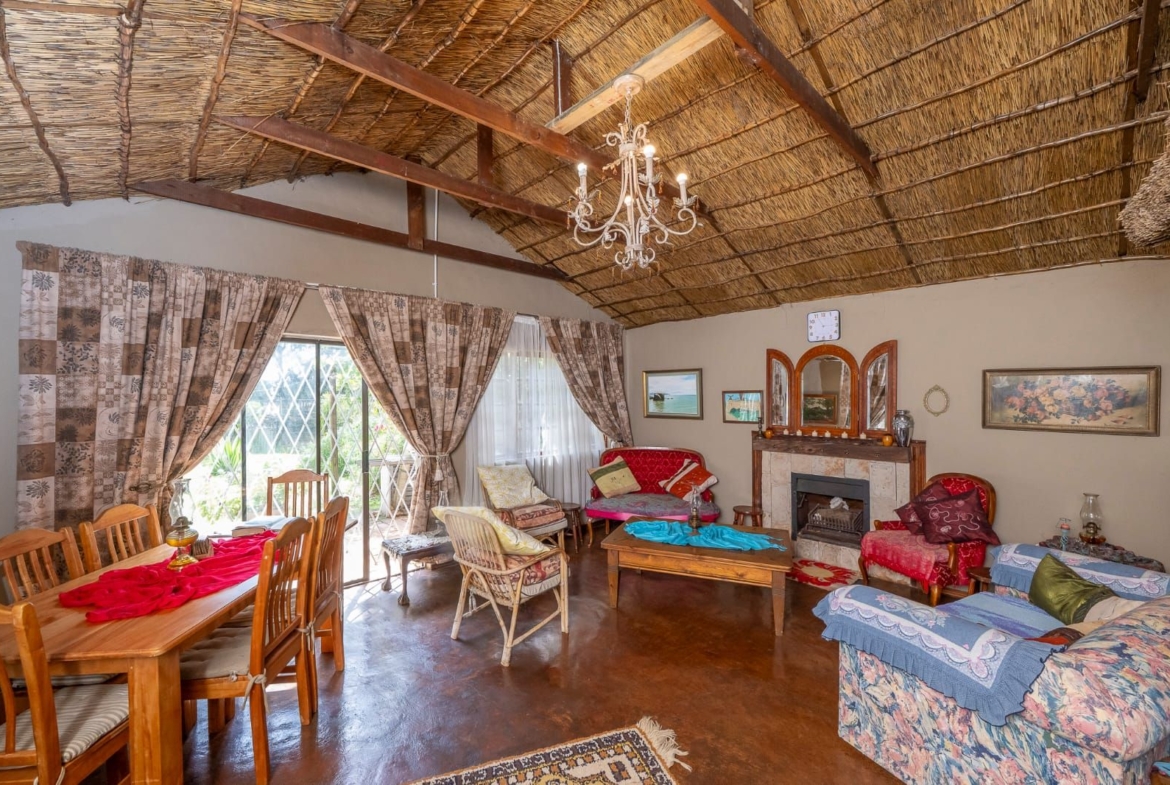 Safari Lodge-Style Retreat: (Main house) This unique home offers an indoor fireplace and braai room, an outdoor Lapa and braai area, a jacuzzi room, bar, wine cellar, beautifully landscaped gardens, a duck pond, and an impressive double entrance.