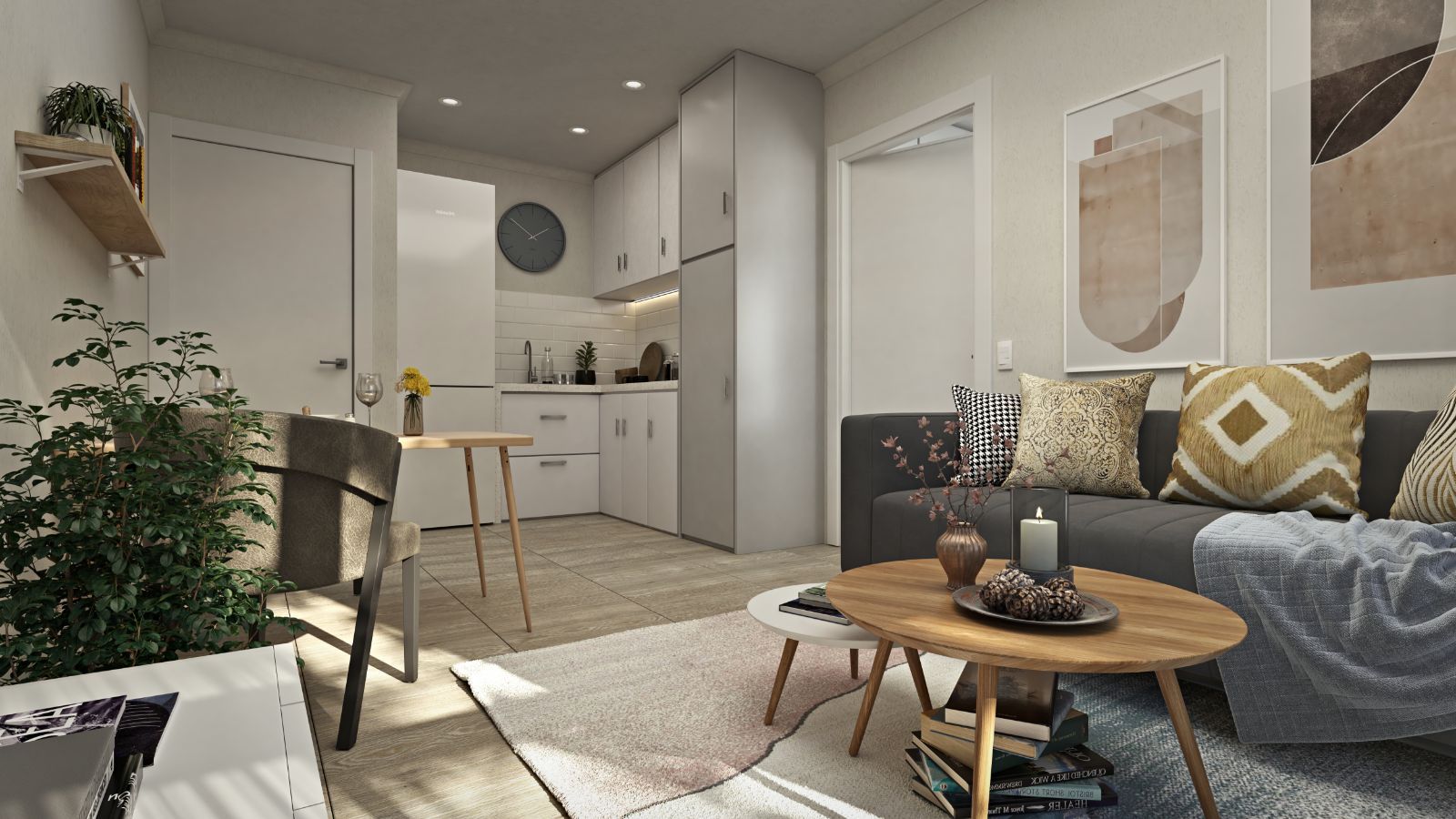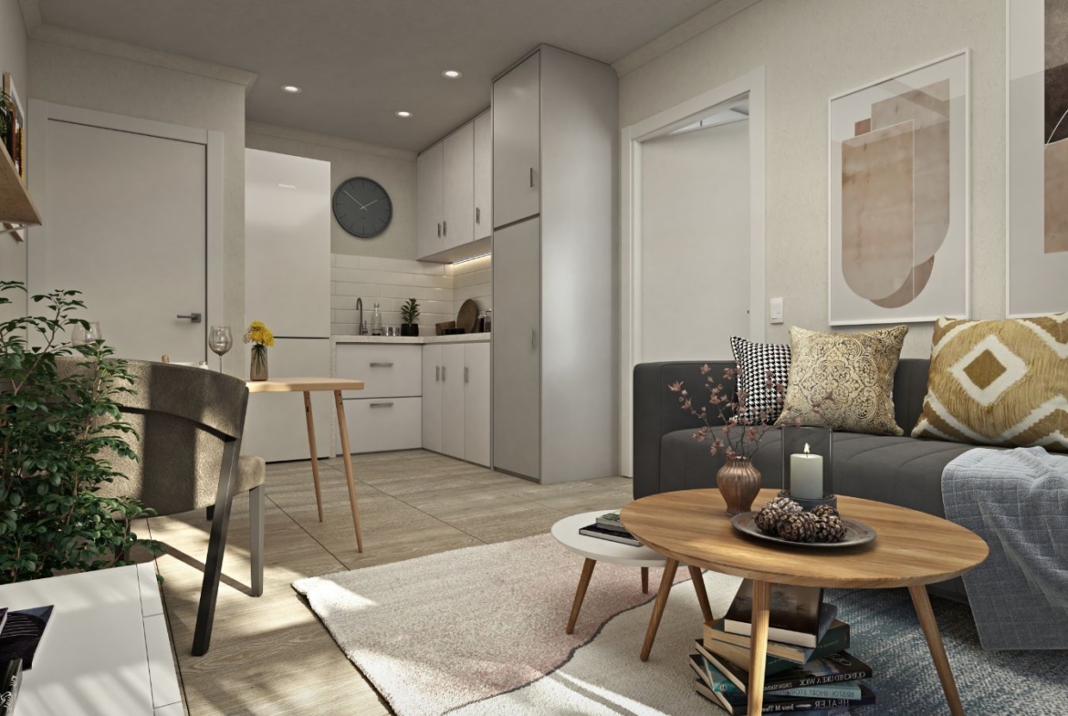 This thoughtfully laid-out suite offers a modern open-plan kitchen that flows into a bright living and dining area, a generous bedroom, and a sleek ensuite bathroom. It’s the ideal space for retirees who value autonomy but appreciate the reassurance of onsite care and support services.