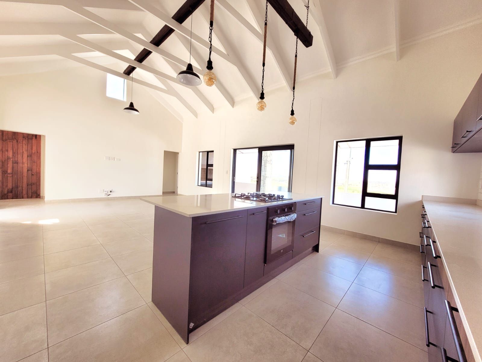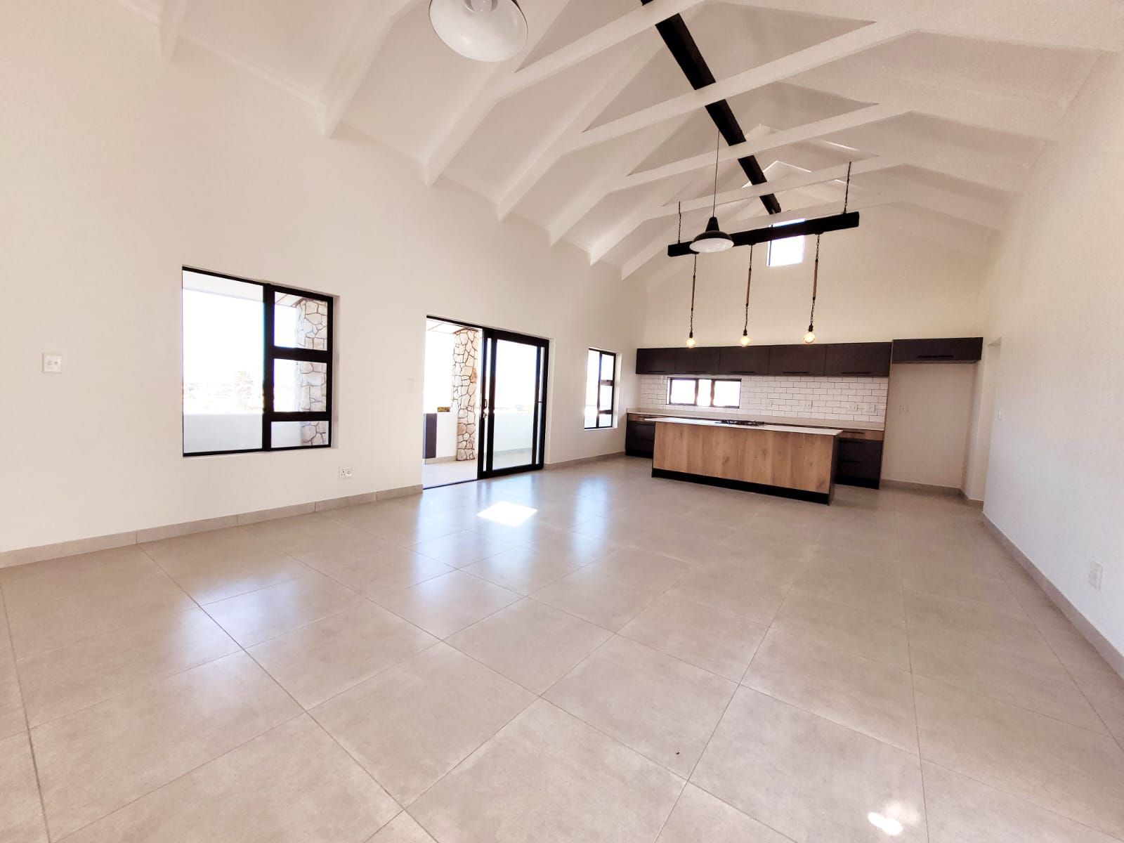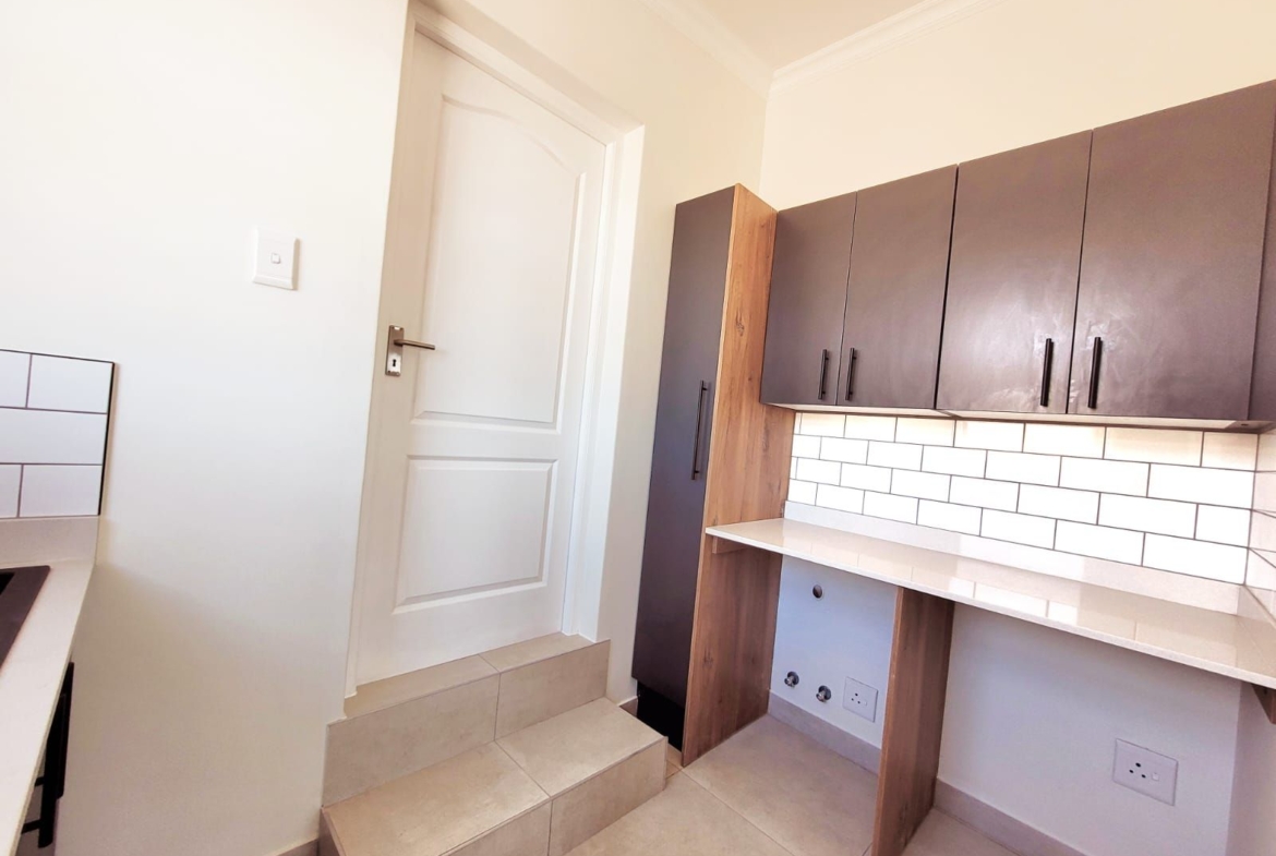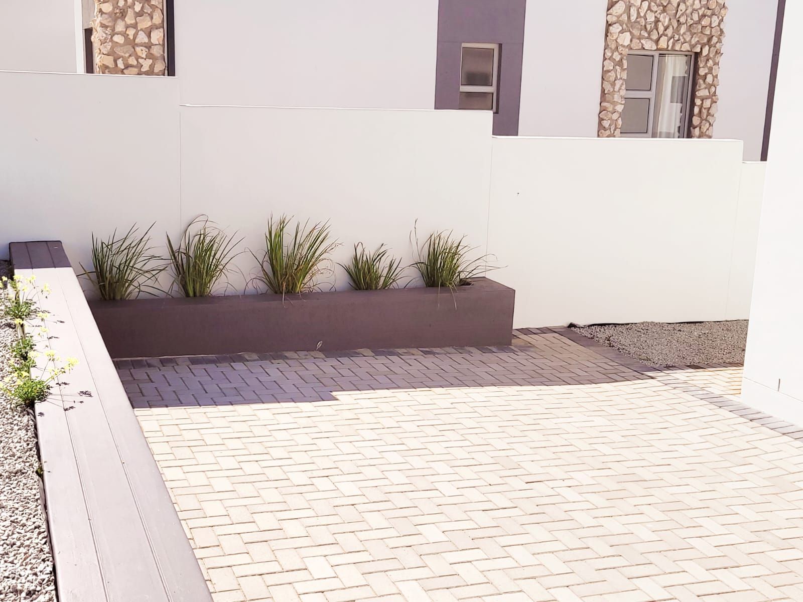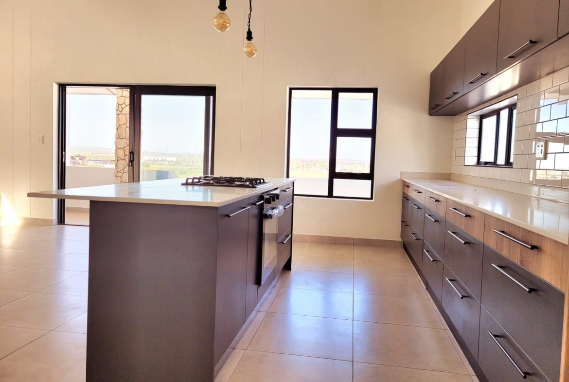 The house offers beautiful open plan living areas, with a built in braai, and a modern kitchen which comes with engineered stone counter tops which are durable and also adding a touch of elegance to the kitchen. There is a separate scullery/laundry room with space for a dishwasher, washing machine as well as tumble dryer.