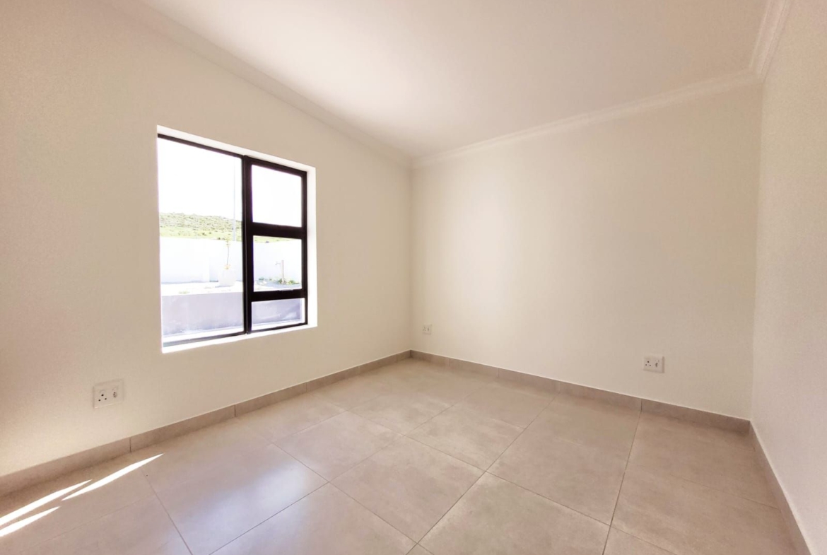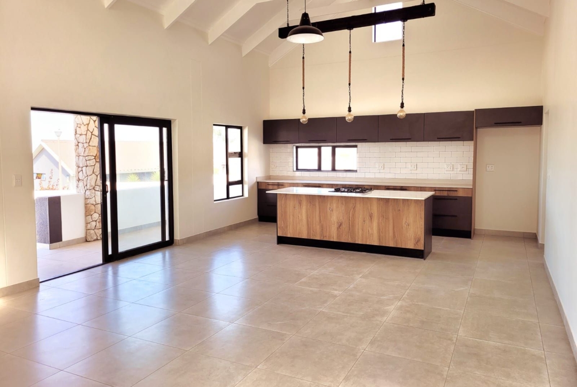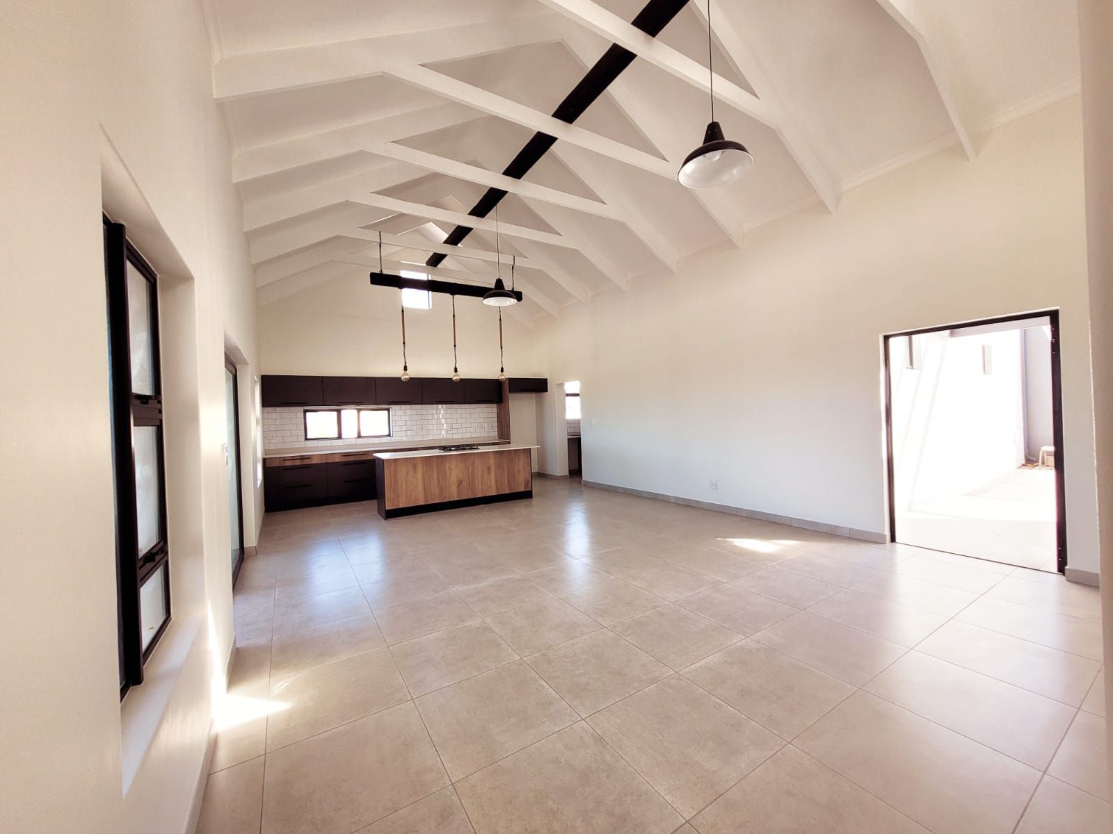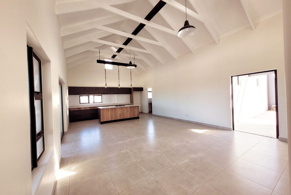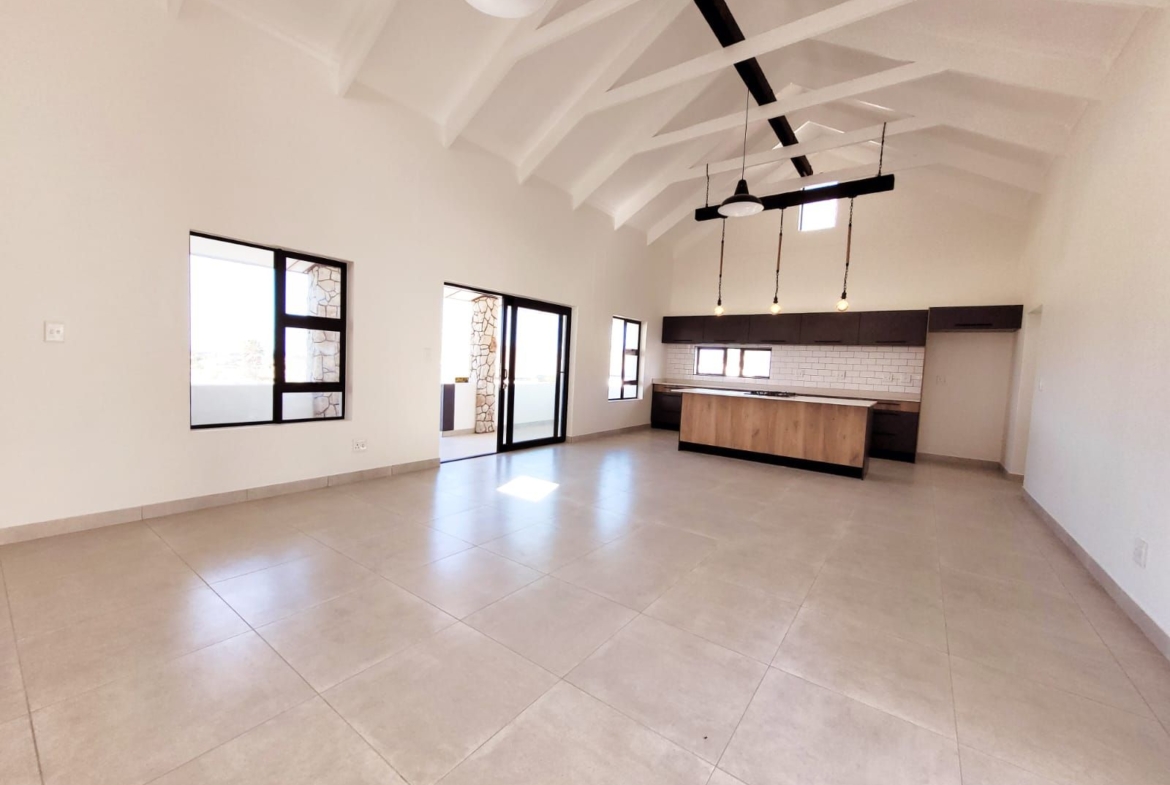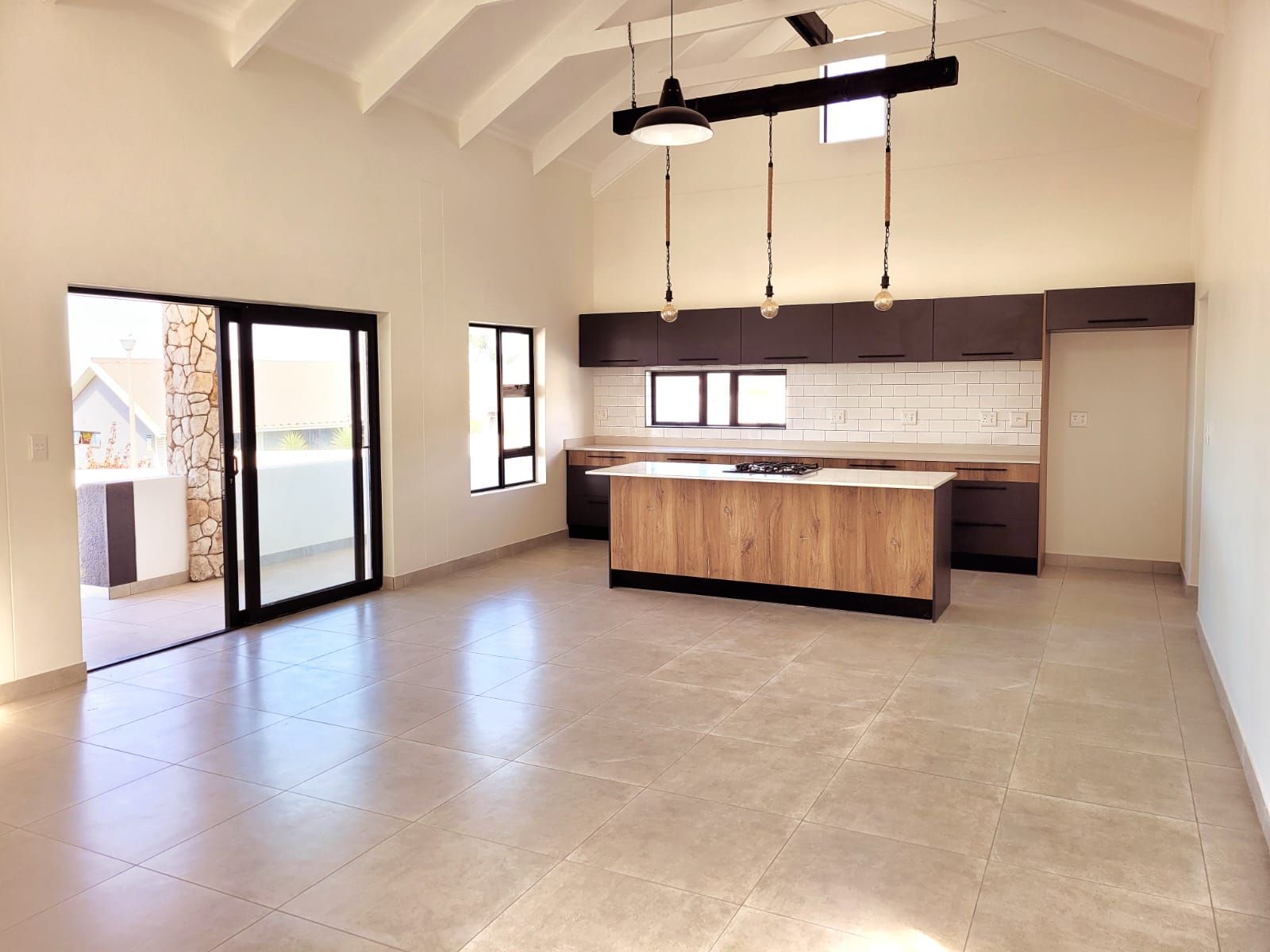 The house offers beautiful open plan living areas, with a built in braai, and a modern kitchen which comes with engineered stone counter tops which are durable and also adding a touch of elegance to the kitchen. There is a separate scullery/laundry room with space for a dishwasher, washing machine as well as tumble dryer.