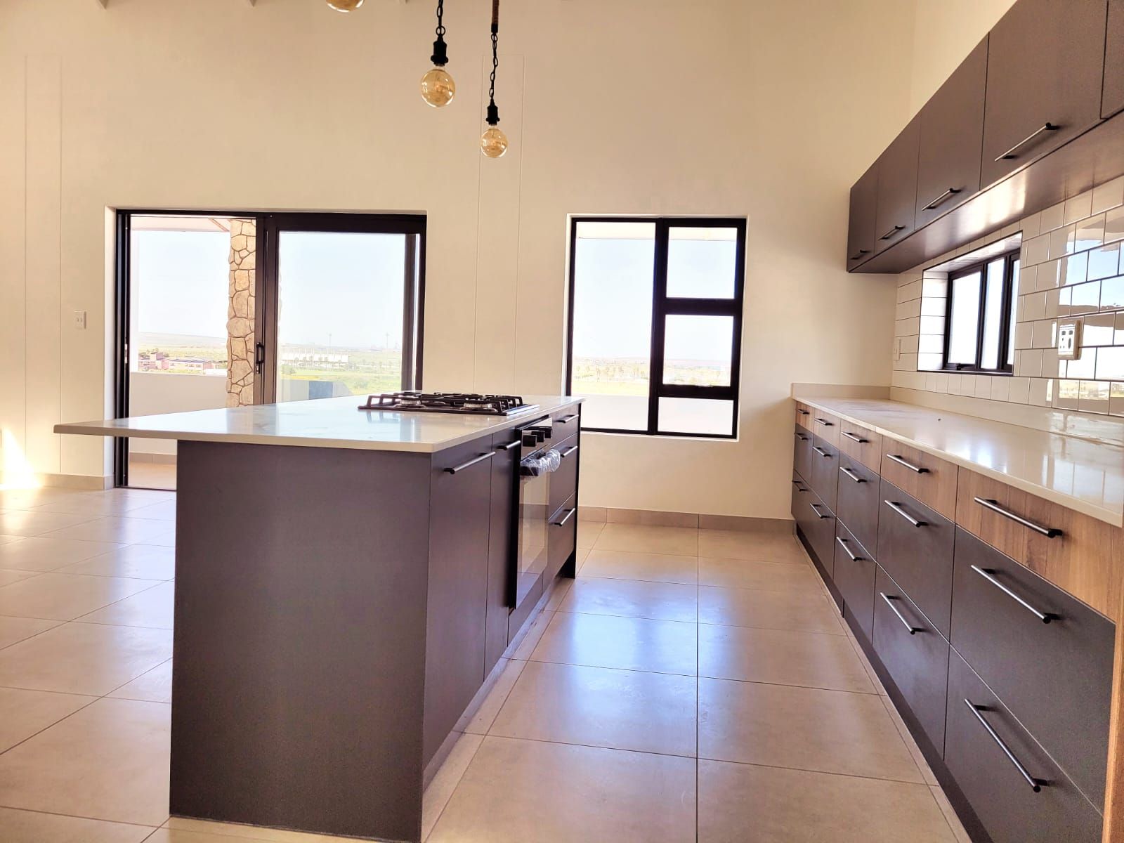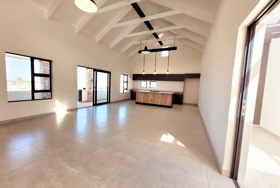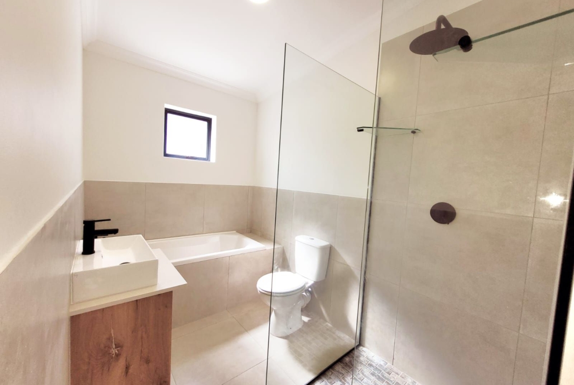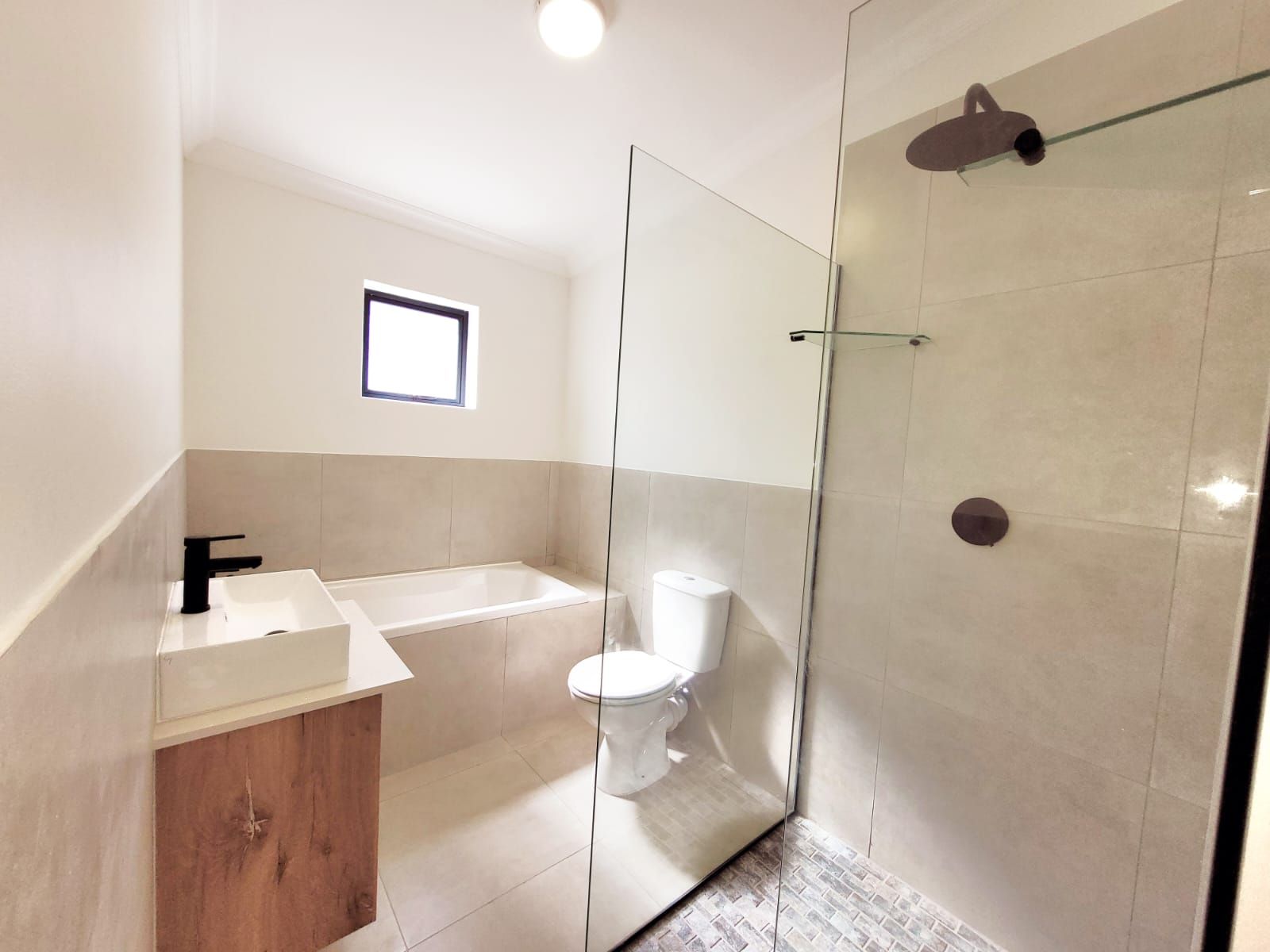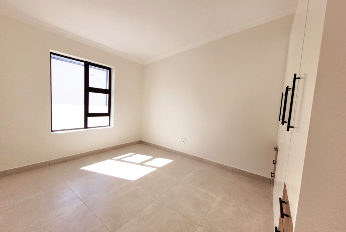 The house offers beautiful open plan living areas, with a built in braai, and a modern kitchen which comes with engineered stone counter tops which are durable and also adding a touch of elegance to the kitchen. There is a separate scullery/laundry room with space for a dishwasher, washing machine as well as tumble dryer.