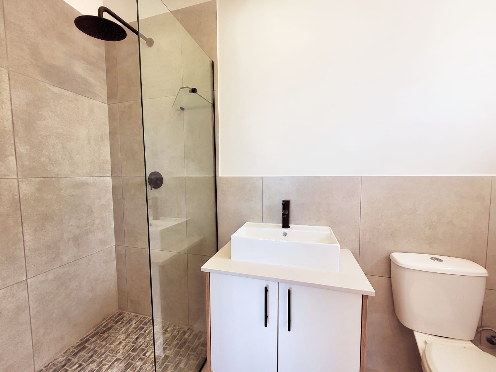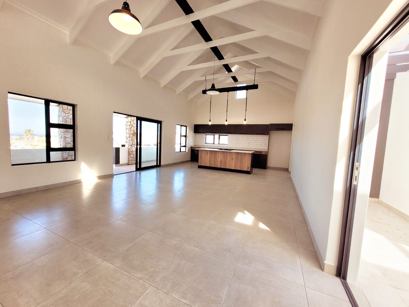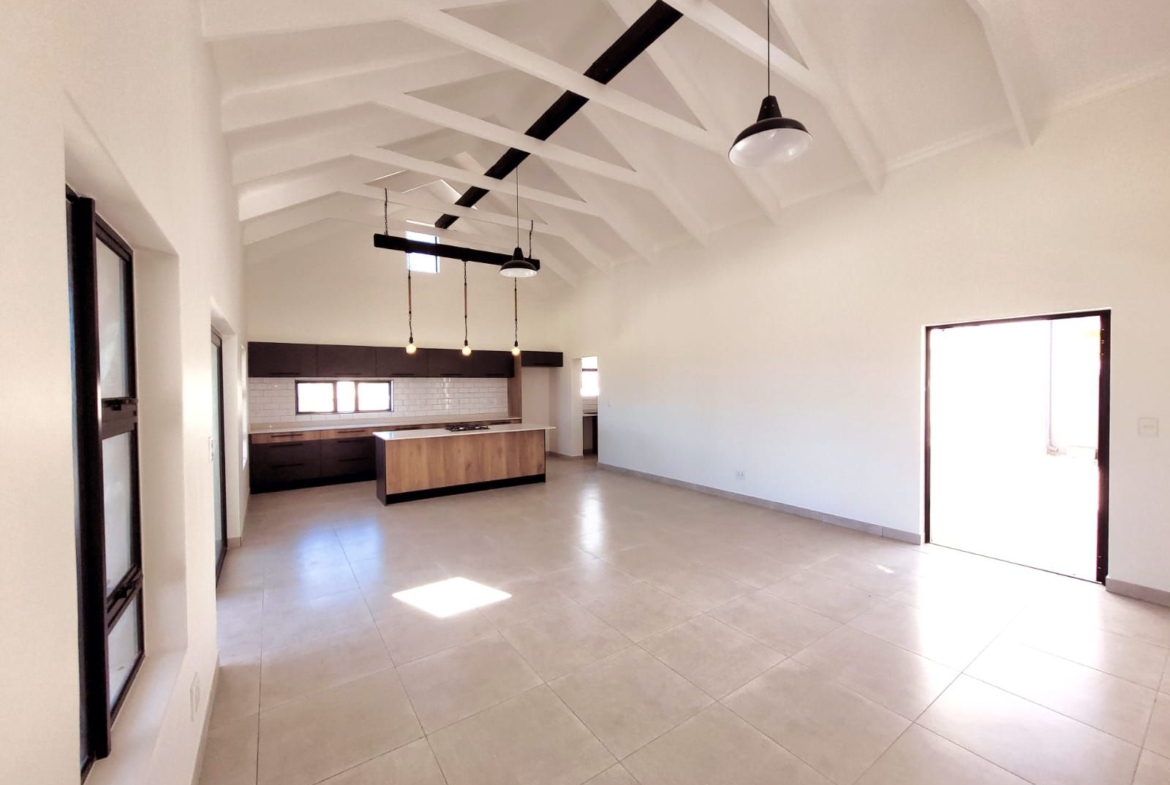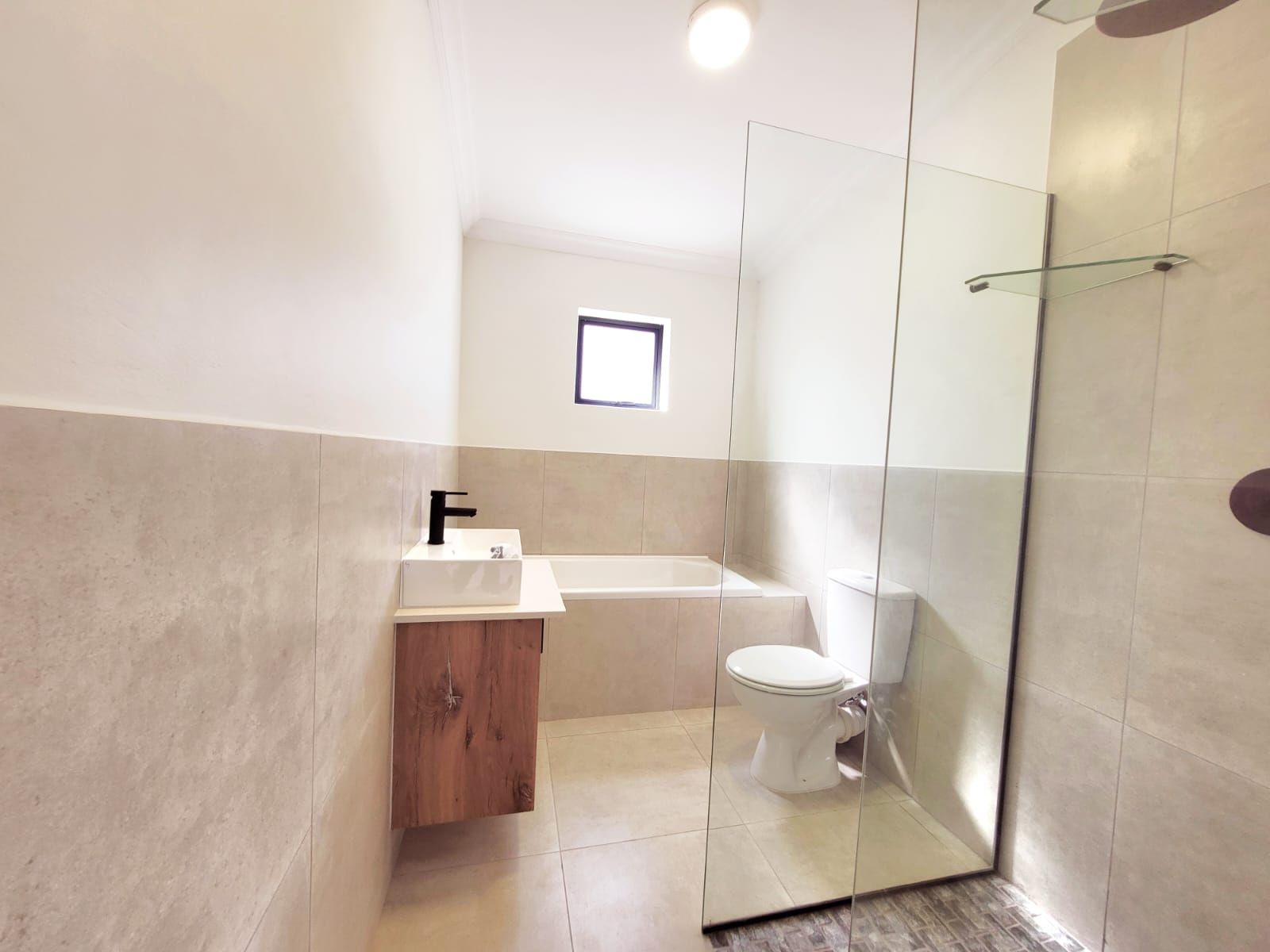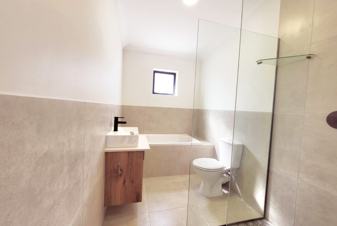 The house offers beautiful open plan living areas, with a built in braai, and a modern kitchen which comes with engineered stone counter tops which are durable and also adding a touch of elegance to the kitchen. There is a separate scullery/laundry room with space for a dishwasher, washing machine as well as tumble dryer.
