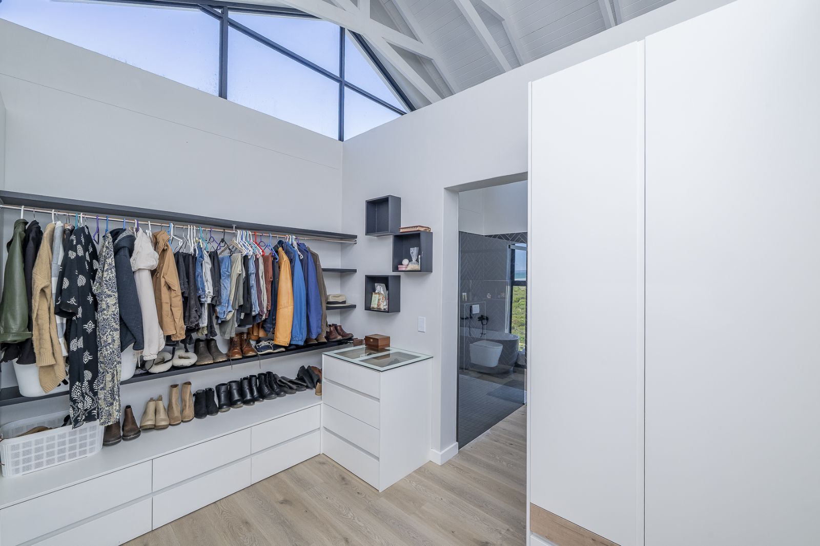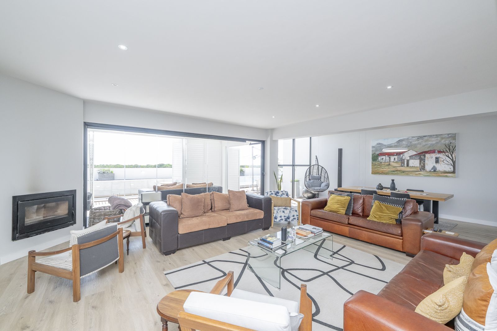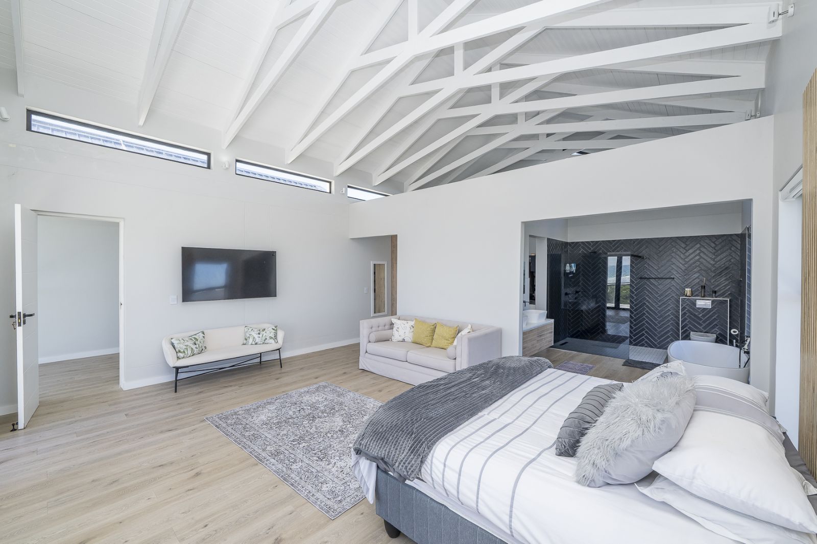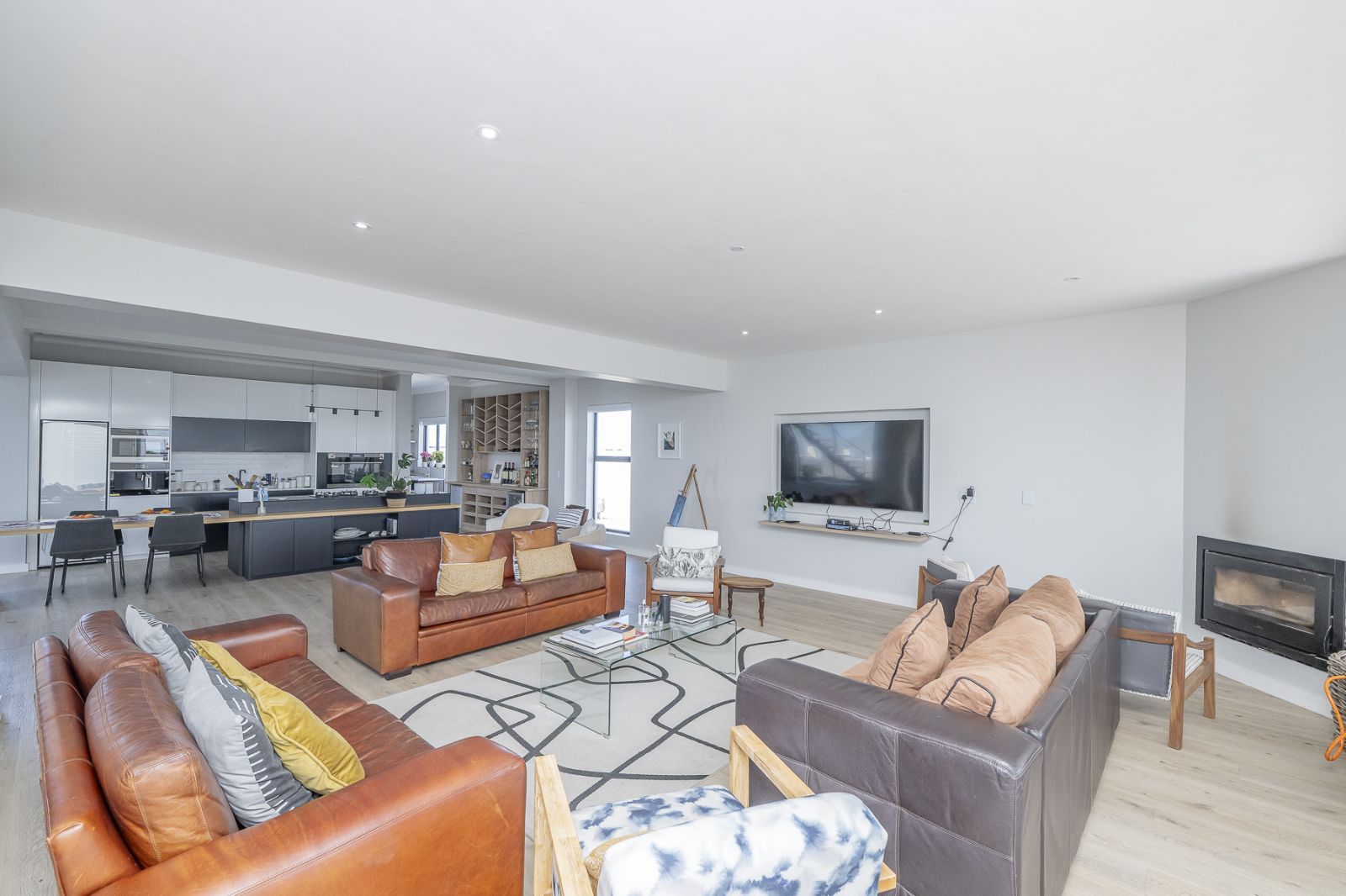 From sun-drenched living spaces with soaring ceilings to the seamless flow of frameless stacker doors opening onto a pool, firepit, and enclosed braai room, every detail of this home has been designed to embrace both comfort and style.