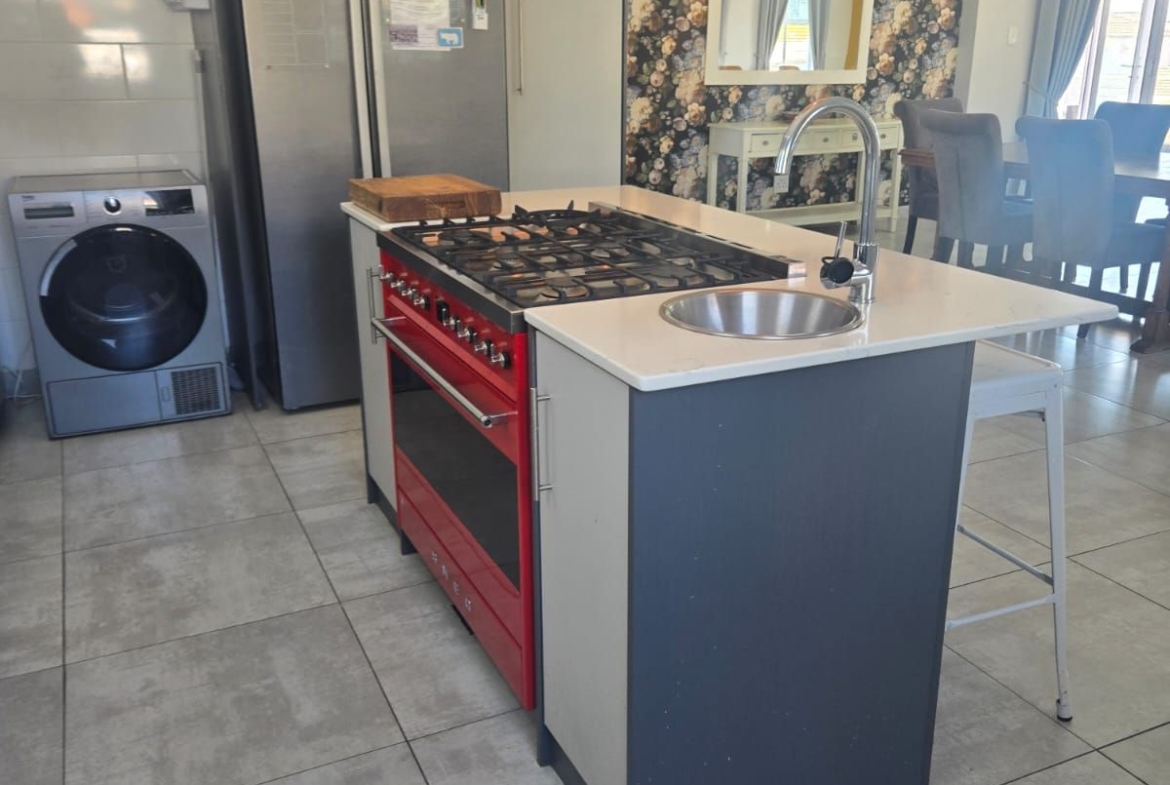 Inside: Step into an elegant entrance hall leading to a spacious, light-filled open-plan living area. The kitchen features ample storage, a double fridge space, and flows seamlessly into the dining area and lounge, complete with a built-in braai, perfect for year-round entertaining. The home offers 4 generous bedrooms and 3 modern bathrooms, designed for both family living and guest comfort.