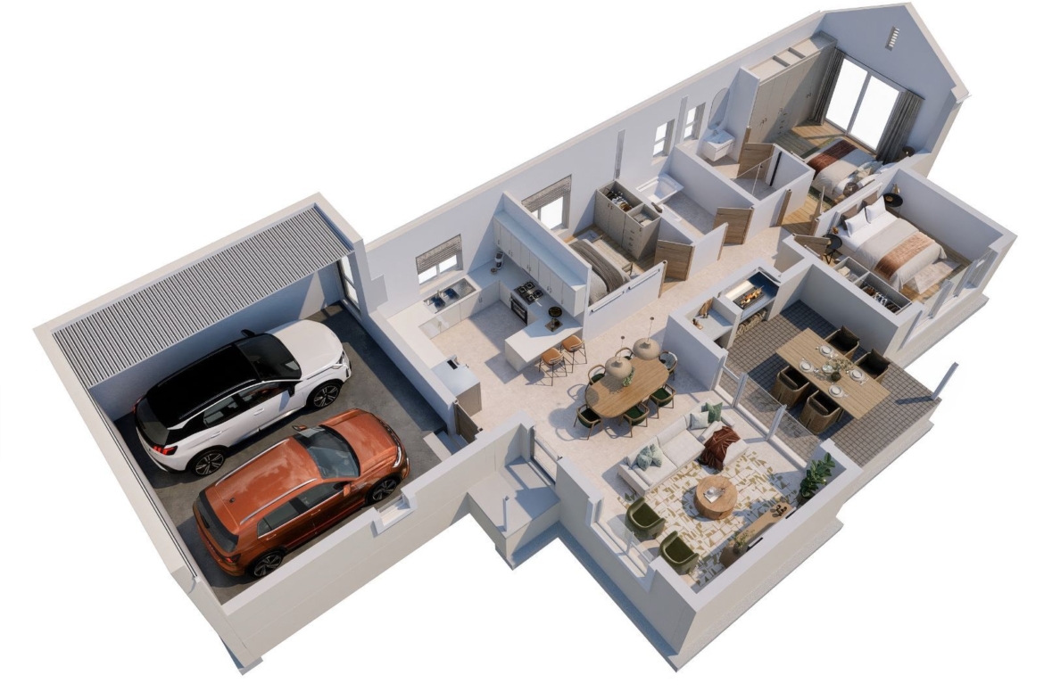 Step inside and experience the warmth of open-plan living, where natural light floods the spacious interior. The thoughtfully designed kitchen merges functionality with contemporary aesthetics, while the living and dining areas extend effortlessly to a covered patio—complete with a built-in braai—perfect for entertaining or relaxing in any season.