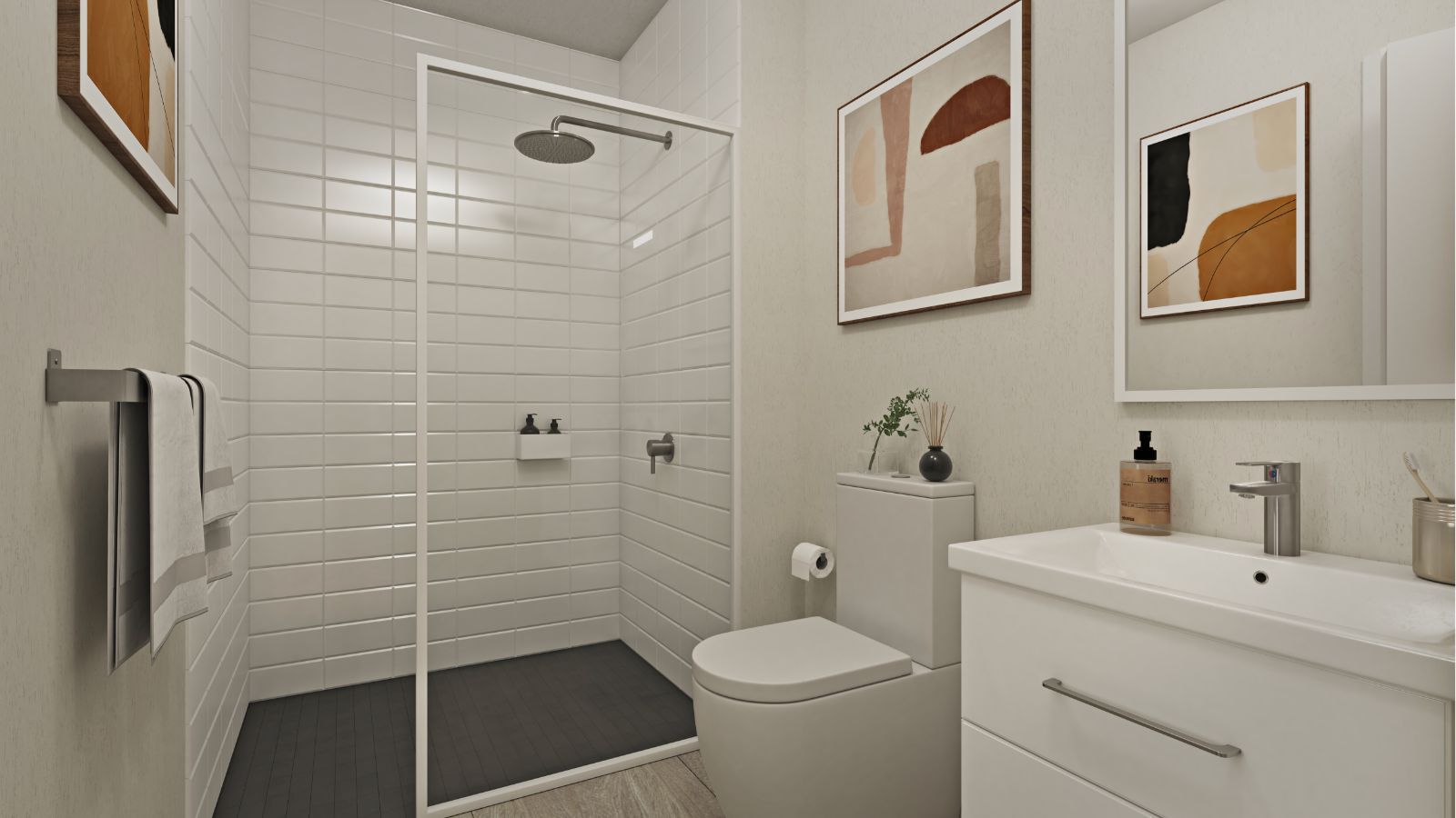 The apartment features a well-designed layout with an open-plan kitchen that flows seamlessly into the living and dining area, a spacious bedroom, and a modern ensuite bathroom. Ideal for those seeking independence with added support.