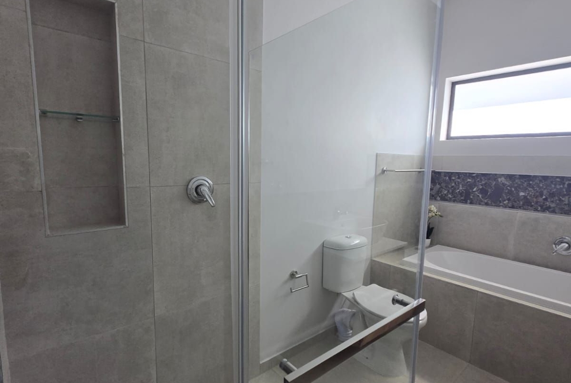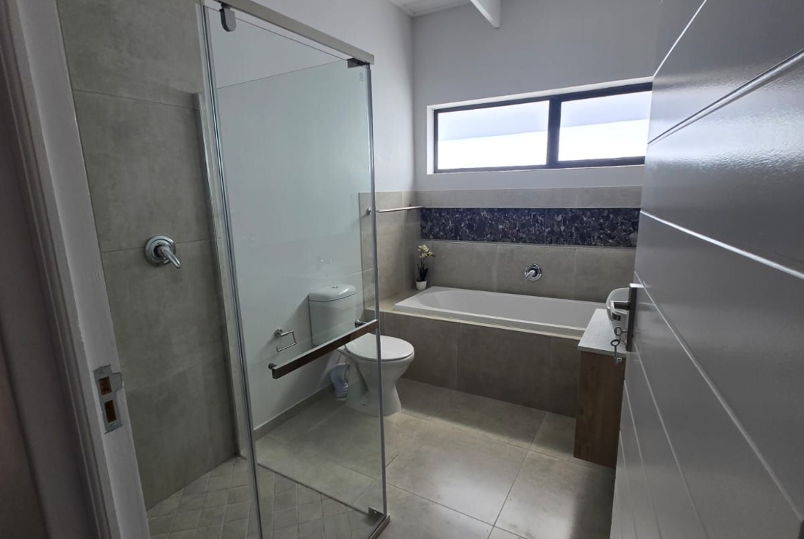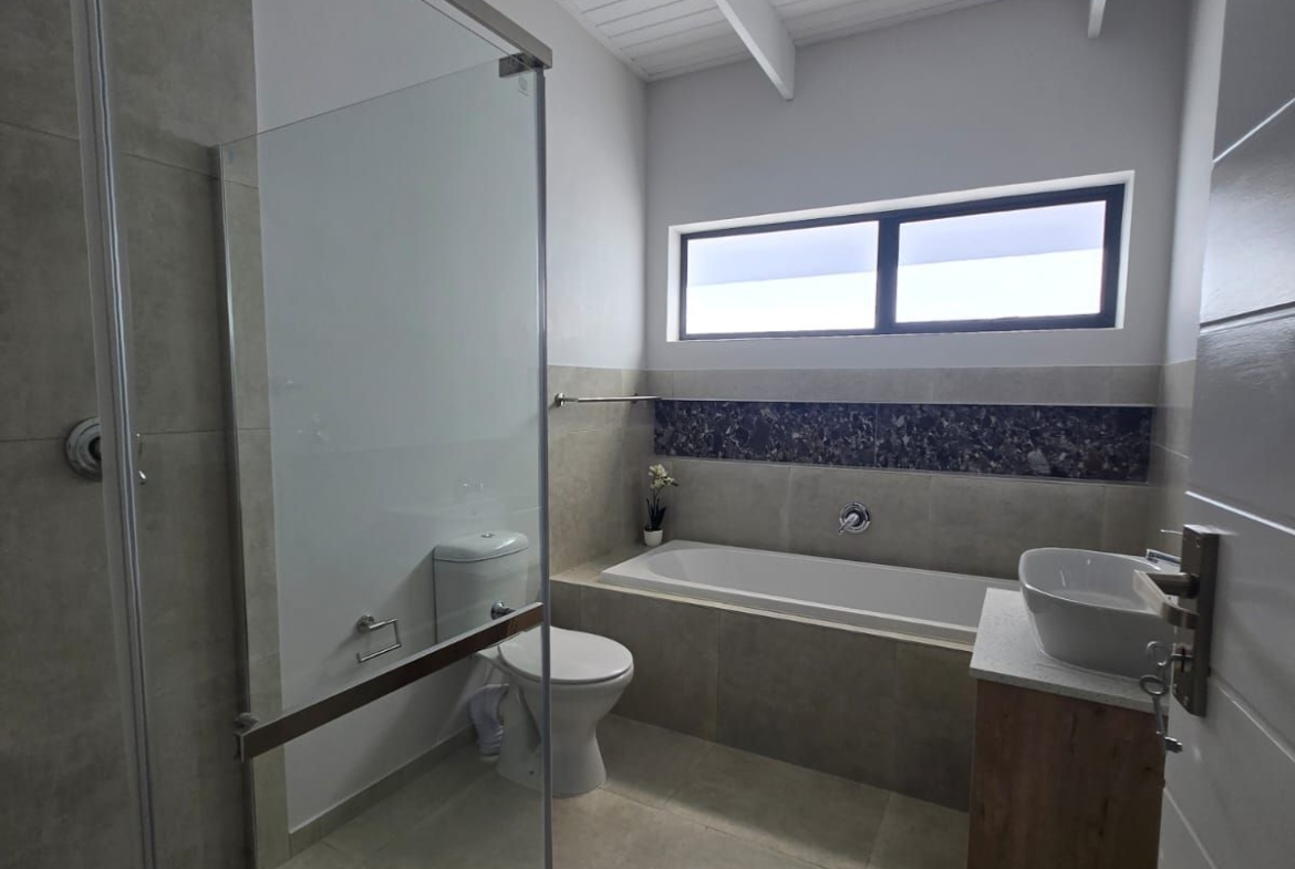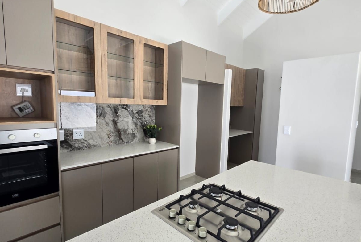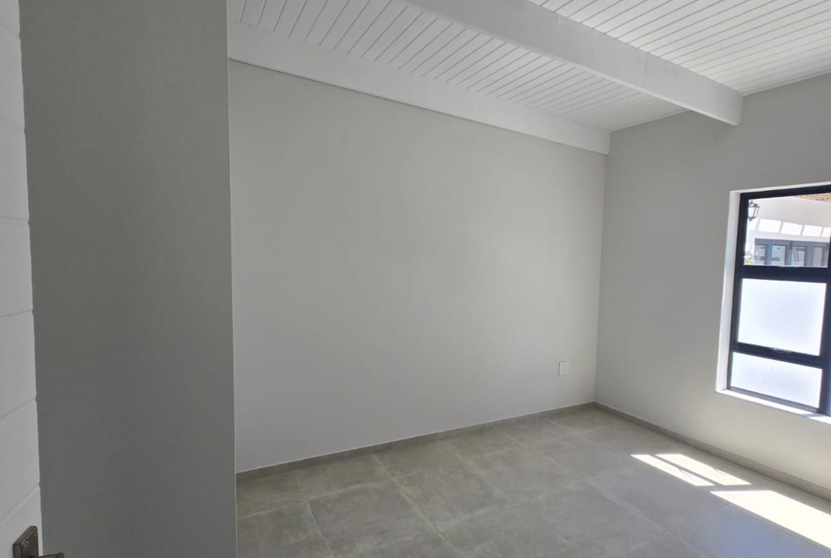 Inside, you’re greeted by spacious, sunlit rooms featuring open trusses, luxurious finishes, and a thoughtfully designed layout. The modern kitchen, complete with gas stove and scullery, flows seamlessly into the dining area and lounge, perfect for relaxed entertaining. A built-in indoor braai enhances the space, making it ideal for gatherings year-round. The home also includes 2 comfortable bedrooms, 2 stylish bathrooms, and a private office/study, ideal for remote work or creative pursuits.