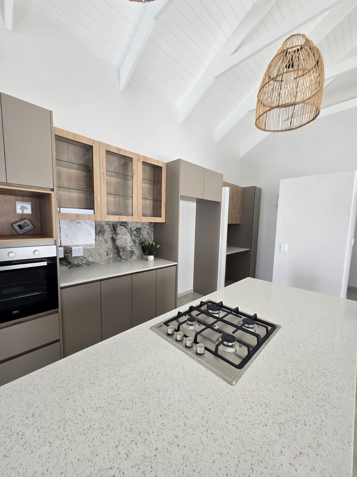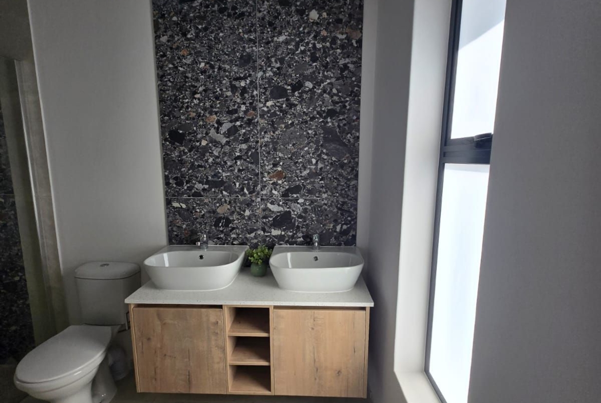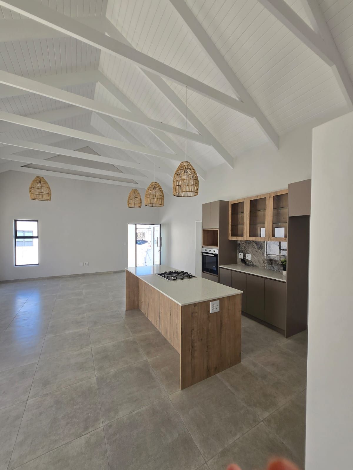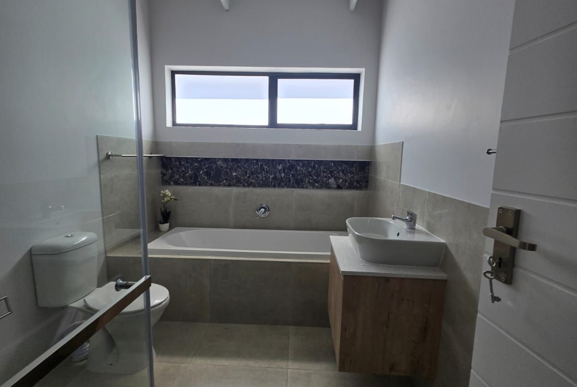 Inside, you’re greeted by spacious, sunlit rooms featuring open trusses, luxurious finishes, and a thoughtfully designed layout. The modern kitchen, complete with gas stove and scullery, flows seamlessly into the dining area and lounge, perfect for relaxed entertaining. A built-in indoor braai enhances the space, making it ideal for gatherings year-round. The home also includes 2 comfortable bedrooms, 2 stylish bathrooms, and a private office/study, ideal for remote work or creative pursuits.