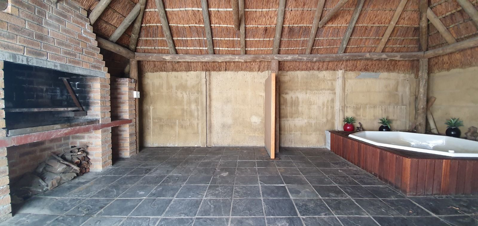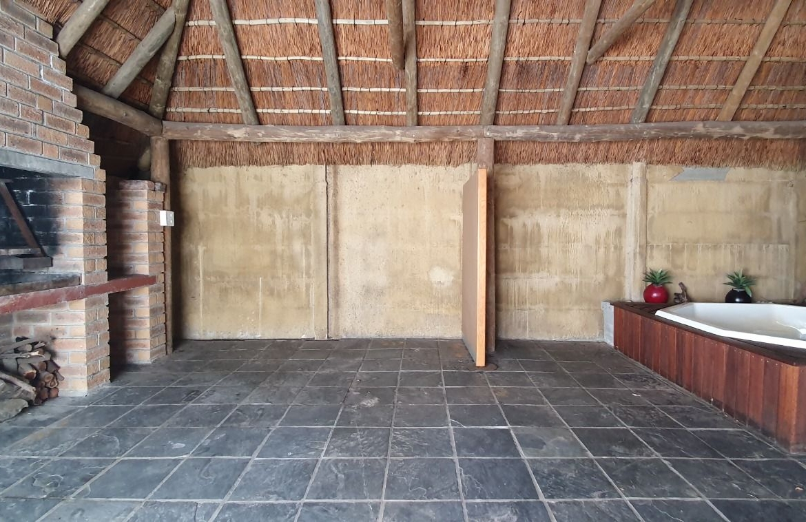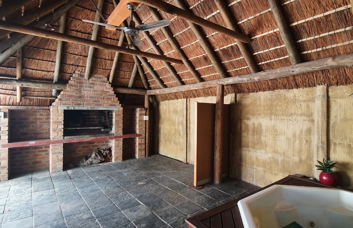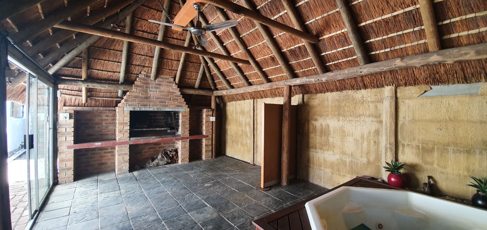 An oversized garage offers ample space for vehicles, tools, or additional storage, with extra parking available behind a secure, automated gate. Safety is prioritised with electric fencing and burglar bars for peace of mind.