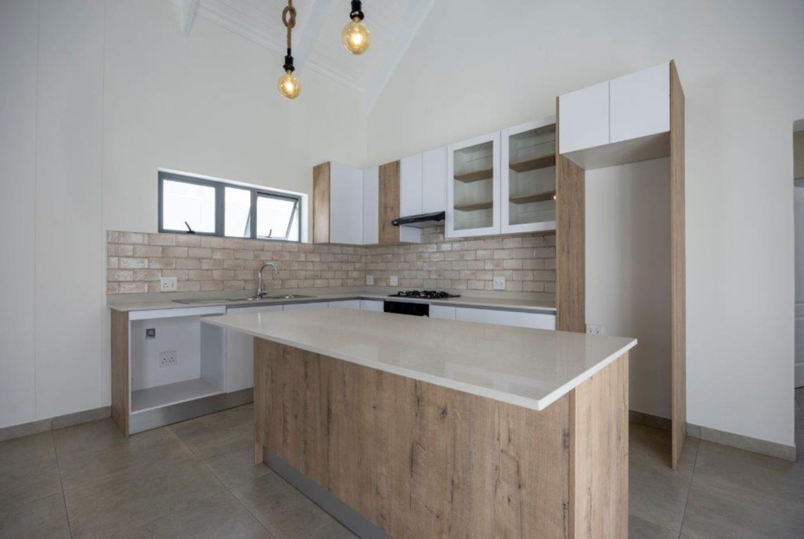 Spacious open-plan kitchen with modern appliances